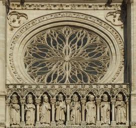Keywords: Amiens cathedral 002.JPG Amiens Cathedral France Cathédrale Notre-Dame d'Amiens France own Mattana 2008-01-08 Images by Mattana-Amiens France West facade of the Cathédrale Notre-Dame d'Amiens West rose window in Cathédrale Notre-Dame d'Amiens exterior view |