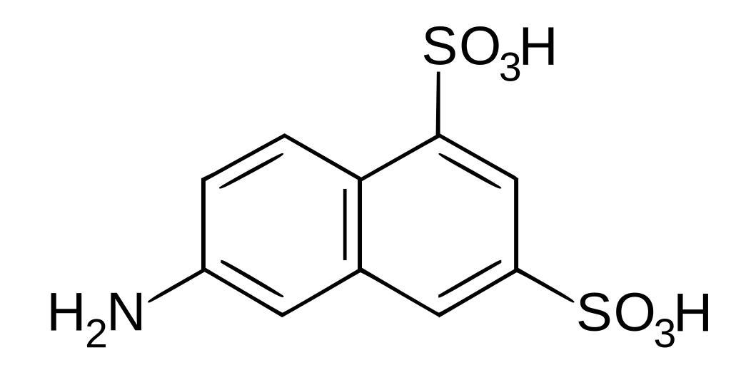 Keywords: Amino I acid.svg Skeletal formula of Amino I acid synonymous with 6-amino-1 3-naphthalenedisulfonic acid Created using ISIS/Draw and Inkscape Own Krakatit 2008-08-31 Naphthylamines Naphthalene sulfonic acids
