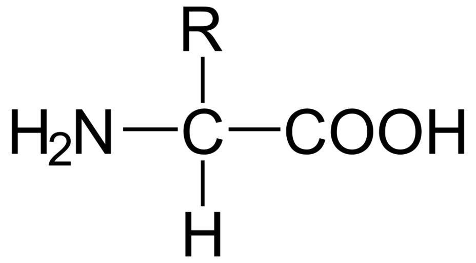 Keywords: Aminosäure allgemein.svg Allgemeine Struktur von Aminosäurenen general structure of amino acids own 2007-01-25 NEUROtiker Alpha-amino acids
