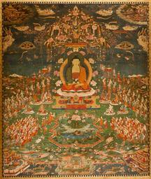 Keywords: 'Amitabha in Sukhavati Paradise', Tibetan, circa 1700, San Antonio Museum of Art.jpg en Amitabha in Sukhavati Paradise Tibetan circa 1700 Ink pigments and gold on cotton San Antonio Museum of Art San Antonio Museum of Art Creator Unknown 1700 Asian art in the San Antonio Museum of Art Thangka from Tibet Sukhavati PD-old-100 |