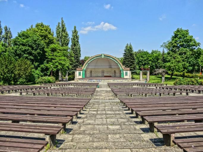 Keywords: amphitheater park ludowy stage outdoor park entertainment theater benches