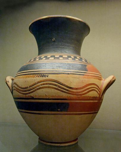 Keywords: Amphora protogeometric BM A1123.jpg Late protogeometric belly-handled amphora with chequer-board design on the shoulder and parallel wavy lines in a panel at the handle zone Made in Athens from Athens Amphore protogéométrique récente à panse ansée décor de damier sur l'épaule et lignes ondulées parallèles en panneau sur la panse Fabriqué à Athènes provenance Athènes between 950 900 BC Terracotta H 35 cm 13 ¾ in Museum British Museum Main floor room 13 Geometric and Archaic Greece object history credit line Former Elgin Collection accession number GR 1978 7-1 7 Cat Vases A1123 Marie-Lan Nguyen 2006 other versions Attic Protogeometric pottery 10th-century BC pottery Elgin Collection Room 13 British Museum Ancient Greek pottery in the British Museum |