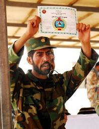 Keywords: An Afghan National Army (ANA) recruit proudly displays the graduation certificate (4782501760).jpg 070810-1159B-083 KANDAHAR PROVINCE AFGHANISTAN July 7 2010 “ An Afghan National Army ANA recruit proudly displays the graduation certificate he earned for completing the Team Leader Course TLC at the Regional Military Training Center RMTC while shouting I serve Afghanistan After eight weeks of Basic Warrior Training at RMTC selected recruits go on to four weeks of the TLC to become non-commissioned officers U S Navy photo by Mass Communication Specialist Brian Brannon/Released http //www flickr com/photos/ntm-a_cstc-a/4782501760/ An Afghan National Army ANA recruit proudly displays the graduation certificate 2010-07-08 09 11 http //www flickr com/people/44825691 N08 NATO Training Mission-Afghanistan MCC Brian Brannon Attribution-ShareAlike License IPTC Caption-Abstract U S Navy photo PD-USGov-Military-Navy File Upload Bot Magnus Manske 2013-07-13 Files from NATO Training Mission-Afghanistan Flickr stream Afghanistan photos from Flickr check needed |