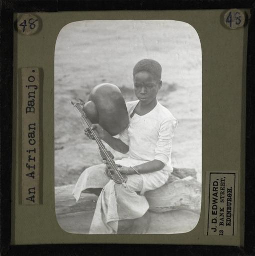 Keywords: An African Banjo, Zambia, ca.1905-ca.1940 (imp-cswc-GB-237-CSWC47-LS6-048).jpg en <br> An African Banjo Zambia ca 1905-ca 1940 Black and white photograph of a young boy holding an African Banjo The African Banjo is a long thin stringed instrument with a gourd like body It may also be referred to as an African Gourd Banjo The address of the photographer is recorded on the slide as J D Edward 13 Bank Street Edinburgh ; This belongs to a series of Church of Scotland Foreign Missions Committee lantern slides relating to Lubwa mission Lubwa mission at Chinsali in north-eastern Zambia began as an outpost of the Free Church of Scotland mission in Malawi The first missionary expeditions to the Chinsali area were carried out by student teachers from the Overtoun Institute at Khondowe The Bemba are the largest ethnic group in northern Zambia and the first Free Church of Scotland establishment among the Bemba was a school at Lubwa opened in 1905 by the Malawian teacher David Kaunda and his wife Photographer Unknown Filename imp-cswc-GB-237-CSWC47-LS6-048 tif Coverage date 1905/1940 Part of collection International Mission Photography Archive ca 1860-ca 1960 Type images Part of subcollection Photographs from the Centre for the Study of World Christianity University of Edinburgh U K ca 1900-ca 1940s Repository name Centre for the Study of World Christianity Archival file impaunpub_Volume7/1608 url Repository address The University of Edinburgh School of Divinity New College Mound Place Edinburgh EH1 2LX United Kingdom Geographic subject country Zambia Format aacr2 1 lantern slide 8 x 8 cm Geographic subject continent Africa Rights Contact the repository for details Part of series Lubwa LS6 Repository email divinity-CSWC ed ac uk Subject lcsh Keyword Musical instruments Date created 1905/1940 Publisher of the digital version University of Southern California Libraries Subject aat genre portraits Format aat lantern slides Legacy record ID impa-m68712 Access conditions http //www ed ac uk/schools-departments/divinity/research/centres/world-christianity/collections-resources File GB 237 CSWC47/LS6/48 1905/1940 author http //digitallibrary usc edu/cdm/ref/collection/p15799coll123/id/64728 PD-old-70-1923 Magic lantern images Images from USC Digital Library uploaded by Fæ International Mission Photography Archive ca 1860-ca 1960 |