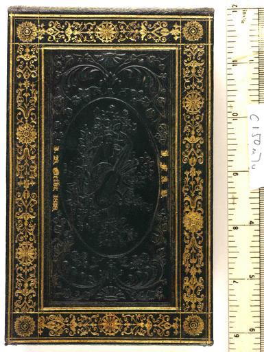Keywords: -An Album Amicorum, bearing inscriptions in Danish and German dated from 1840 to 1855.- - Upper cover (c150m7).jpg Style Dated Panel design; Caption Upper cover; Colour Green; Edge Unspecified exhibition history Decorative Technique Blocked in blind Tooled in gold; Cover Material Goatskin includes morocco turkey etc Part of the Charles Ramsden Collection of Signed Bindings A manuscript in a contemporary green morocco binding tooled in gold and blocked in blind Macchi states; probably bound in Germany Romantic binding Dated 1888 object history Text 1840-1855; s l ; Unspecified object type Cc-zero place of creation Binding Germany place of discovery Unspecified British Library image http //www bl uk/catalogues/bookbindings/LargeImage aspx RecordId 020-000002318 ImageId ImageId 40764 Copyright BL An Album Amicorum bearing inscriptions in Danish and German dated from 1840 to 1855 Uploaded with GWToolset An Album Amicorum bearing inscriptions in Danish and German dated from 1840 to 1855 - Upper cover c150m7 http //www webarchive org uk/bldatasets/bindings/5256_4 jpg 19th-century bookbinding Bookbinding British Library Bookbindings |