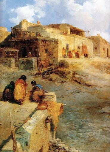 | Keywords: An-Indian-Pueblo-Laguna-New-Mexico-833x1155.jpg Artwork Creator Thomas Moran An Indian Pueblo Laguna New Mexico 1908 oil canvas cm 64 14 76 84 American Museum of Western Art “ The Anschutz Collection Denver Colorado accession number object history credit line exhibition history http //www firstpeople us firstpeople us http //www the-athenaeum org/art/display_image php id 151050 the full painting by the-athenaeum org PD-old-auto-1923 1926 Thomas Moran American Museum of Western Art Paintings of Native Americans Laguna Pueblo Native American architecture |