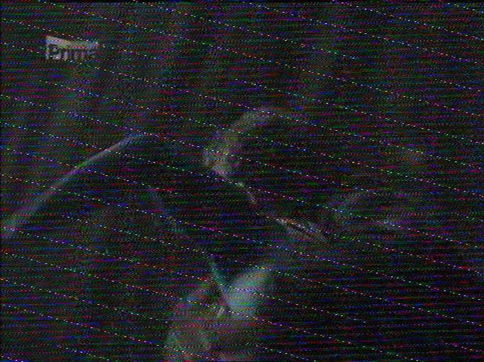 Keywords: Analog TV EMI.jpg en Electromagnetical interference in video signal - screenshot from analog television broadcast Superman Returns Notice the diagonal stripes of dots a marker of a fixed frequency interfering with the broadcast; in the video they are slowly traveling upwards The screenshot was done on fbtv on a Bt878-based video capture card Own Shaddack 2009-02-28 Electromagnetic interference