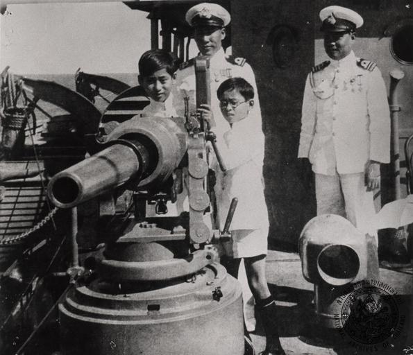 Keywords: Ananda Mahidol and Bhumibol Adulyadej 1939.01.13 (2).jpg th พระบาทสม ด็จพระ จ้าอยู่หัวอนันทมหิดล และสม ด็จพระ จ้าอยู่หัวภูมิพลอดุลย ดช ทรงสนพระทัยอยู่กับอาวุธปืนประจำ รือรบหลวงแม่กลอง ระหว่าง สด็จฯไปยัง รือซีแลนด์ ดีย ที่จอดอยู่ที่ กาะสีชัง มื่อวันที่ 13 มกราคม พ ศ 2482 1939-01-13 http //www finearts go th/nat/images/kingbhumibol/CFN01-P0017356-0000 jpg The National Archives of Thailand The National Archives of Thailand other versions Custom license marker 2016 10 20 PD-Thailand Photos of Ananda Mahidol Bhumibol Adulyadej in 1939 HTMS Maeklong |