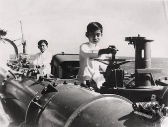 Keywords: Ananda Mahidol and Bhumibol Adulyadej 1939.01.13 (3).jpg th พระบาทสม ด็จพระ จ้าอยู่หัวอนันทมหิดล และสม ด็จพระ จ้าอยู่หัวภูมิพลอดุลย ดช ทรงสนพระทัยอยู่กับอาวุธปืนประจำ รือรบหลวงแม่กลอง ระหว่าง สด็จฯไปยัง รือซีแลนด์ ดีย ที่จอดอยู่ที่ กาะสีชัง มื่อวันที่ 13 มกราคม พ ศ 2482 1939-01-13 http //www finearts go th/nat/images/kingbhumibol/CFN01-P0017357-0000 jpg The National Archives of Thailand The National Archives of Thailand other versions PD-Thailand Photos of Ananda Mahidol Bhumibol Adulyadej in 1939 HTMS Maeklong |