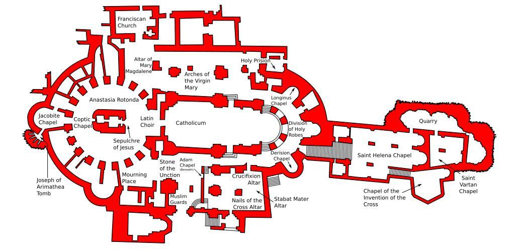 Keywords: Anastasia Rotonda sketch 1.svg Grundplan for den moderne kirke Church of the Holy Sepulchre Floor plan of the present church Église du Saint-Sépulcre Plan au sol de l'église actuelle own date MHz`as Church of the Holy Sepulchre Diagrams of the Holy Sepulchre Plans of rotundas and polygonal churches |