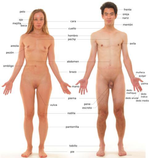 Keywords: Anatomía humana - nuevo.svg es Varón y hembra humanos rasgos anatómicos externos File Anterior view of human female and male without labels jpg 2012-12-21 Mikael Häggström Human body images in different languages cc-zero Personality rights Nude men and women with white background |