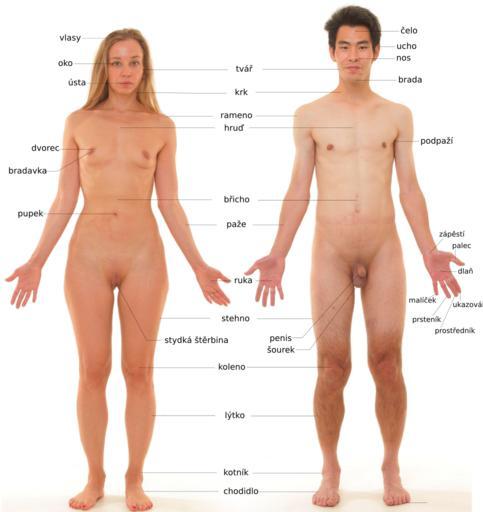 Keywords: Anatomické zobrazení.svg cs Muž a žena - anatomické zobrazení en Human male and female - anatomical features pointed out File Anterior view of human female and male without labels jpg 2012-12-21 Mikael Häggström Human body images in different languages cc-zero Personality rights Nude men and women with white background |