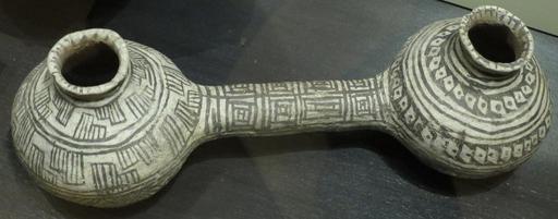 Keywords: Ancestral Pueblo, Flagstaff black on white double jar, 1100-1200 CE, Heard Museum.JPG en Ancestral Pueblo Flagstaff black on white double jar 1100-1200 CE Heard Museum own Wmpearl photo 2015 Ancestral Pueblo pottery in the Heard Museum Cc-zero |
