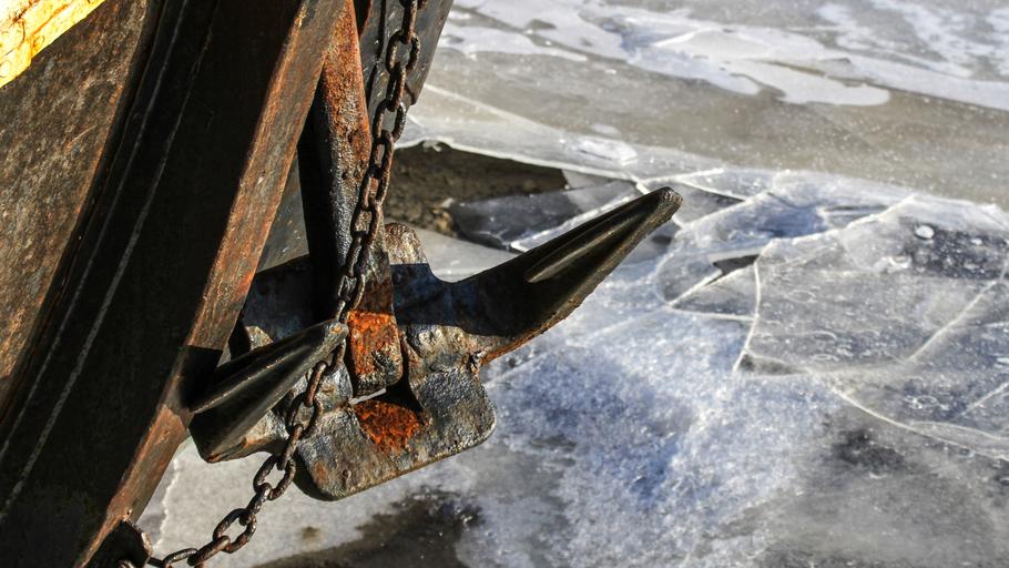 Keywords: anchor bug rusty ship accessories port shipping ship's bow ice ice floes ice floe