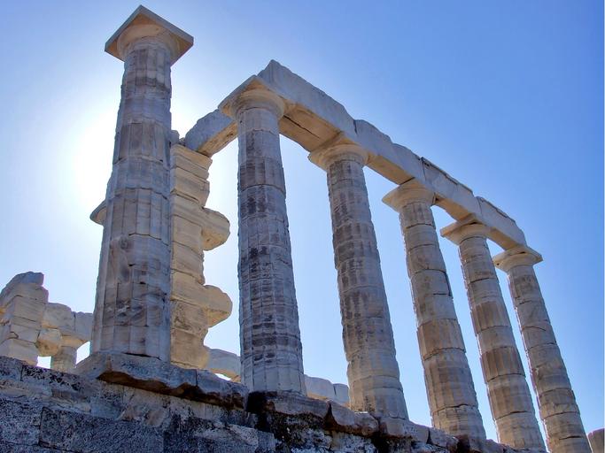 Keywords: ancient greek temple temple of poseidon sounio sounion greece old marble antiquity architecture culture classical landmark historical monument