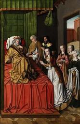 Keywords: Andalusische Schule 004 Der greise David und Abischag.jpg Der greise David und Abischag die Sunamitin Öl auf Holz 148 x 99 5 cm 1 Buch Könige žUnd man suchte ein schönes Mädchen in allen Grenzen Israels und man fand Abischag die Sunamitin und brachte sie zum König Und das Mädchen war überaus schön und sie wurde dem König eine Pflegerin und bediente ihn http //www hampel-auctions com Hampel Kunstauktionen between 1500 1520 Andalusische Schule um 1500-1520 aktiv in Sevilla Anfang 16 Jahrhundert žMeister der Schretlen-Beschneidung <gallery> Andalusische Schule 001 Samuel Saul David jpg Andalusische Schule 002 Fastengelübde Davids und Ende des Fastens jpg Andalusische Schule 003 Brandopfer und Prozession jpg Andalusische Schule 004 Der greise David und Abischag jpg </gallery> PD-old-100 Images from Hampel Auctions 16th-century paintings from Spain David and Abishag Old people in art Beds in art |