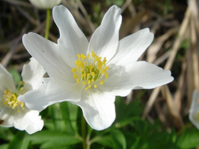 Keywords: anemone flower bloom white blossom spring green floral plant close up petals