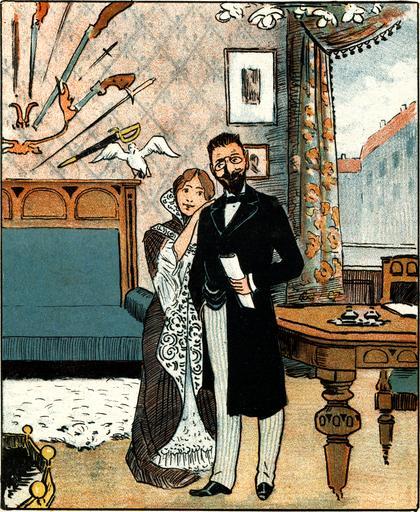 Keywords: —AnerkendelseSagfoereren.jpg LargeImage en Recognition <br>The lawyer Rejoice little wife now you get the new hat that you have so long wished you - and a fur coat you also get <br>Lady Well dear Albert then you must also have had a great rogue acquitted da Anerkendelse<br>Sagføreren Glæd dig lille kone nu skal du få den nye Hat som du så længe har ønsket dig - og en pelskåbe skal du også få <br>Fruen Nå kære Albert så må du også ha'e fået en stor gavtyv frifunden Ravnen anonymes 1901-02-17 PD PD-Art Ravnen Caricatures of couples Fashion in 1901 1901 cartoons 1901 in Denmark Lawyers in art Weapons in art |