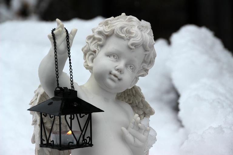 Keywords: angel angel figure symbol angel wings angel face sweet small light lantern decoration consolation snow