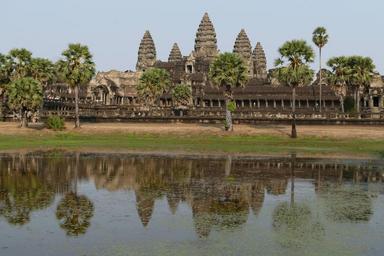 Keywords: angkor angkor wat cambodia temple asia temple complex historically architecture unesco world heritage unesco world heritage siem reap lake pond palm mirroring
