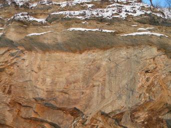 | Keywords: Angular Unconformity Kutna Hora detail 2.jpg cs Úhlová diskordance mezi prvohorními vrstvami pararuly a křídovými usazeninami pískovec slepenec v lomu Práchovna Kutná Hora-Žižkov de Winkeldiskordanz zwischen paläozoischem Paragneis der Malin-Einheit des Kutná-Hora-Kristallins Moldanubikum der Böhmischen Masse und kreidezeitlichem Konglomerat und Sandstein des Böhmischen Kreidebeckens Prachovna-Steinbruch südlicher Stadtrand von Kutná Hora Tschechische Republik en Angular unconformity between Paleozoic paragneiss of the Malin Unit of the Kutna Hora Crystalline Complex KHCC Moldanubian Zone of the Bohemian Massif and Cretaceous conglomerate and sandstone of the Bohemian Cretaceous Basin BCB Prachovna quarry southern outskirts of Kutná Hora Czech Republic own Lamprus 2010-12-18 49 937501 15 265106 Heading E Unconformities in the Czech Republic Sandstone Cretaceous geology Gneiss Paleozoic geology Geology of the Czech Republic |