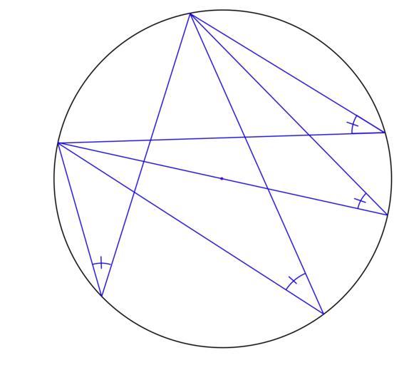 Keywords: Angulos inscritos.svg Todos los ángulos semiiscritos que subtienden el mismo arco son iguales 2006-06-08 own assumed Magister Mathematicae Drawings by Magister Mathematicae Central and inscribed angles