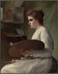 Keywords: Aniela Poraj-Biernacka - Autoportret.jpg en Self-portrait 1878-1883 Oil on canvas cm 91 72 Institution National Museum in Warsaw http //www europeana eu/portal/record/09404/56ACB40C1934F26567D79C897725F2615DADA15F html other versions <gallery>Poraj-Biernacka Self-portrait jpg</gallery> PD-old-100 DEFAULTSORT 1878-1883; Self-portrait Aniela Poraj-Biernacka 19th-century self-portrait paintings of women 19th-century oil portraits of sitting women at three-quarter length Self-portrait paintings holding palette and brushes |