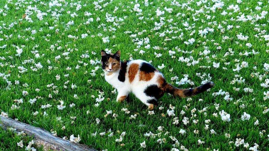 Keywords: animal cat feline grass blossoms