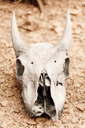 Keywords: animal skull arid bone dead death decay desert drought dry head heat horns parched sand skeleton