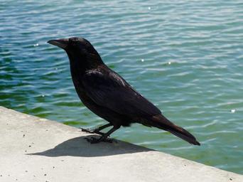 Keywords: animals bird raven black sitting observing