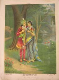 Keywords: Aniruddha and Usha stand in a forest with a western influenced landscape scene, complete with a pair of swans floating in a pond, in the background..jpg en Album of popular prints mounted on cloth pages Colour lithograph lettered inscribed and numbered 9 Aniruddha and Usha stand in a forest with a western influenced landscape scene complete with a pair of swans floating in a pond in the background Usha fell in love with a young man in a dream and enlisted the help of an artist to draw his likeness and help her find him That man was identified as Aniruddha the grandson of Krishna and the two were secretly married ~ 1895 http //www britishmuseum org/research/search_the_collection_database/search_object_details aspx objectid 3268157 partid 1 searchText usha fromADBC ad toADBC ad numpages 10 orig 2fresearch 2fsearch_the_collection_database aspx currentPage 1 Printed in Calcutta PD-Art Uploaded with UploadWizard Bhagavata Purana Swans in art of India |