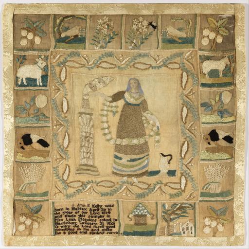 Keywords: Ann E. Kelly - Sampler - Google Art Project.jpg 1814 1814 Ann 6717270 E Kelly 1814 - 1814 /collection/cooper-hewitt-national-design-museum/artwork/sampler-ann-e-kelly/4174967/ 75182 Ann E Kelly /artist/ann-e-kelly/6829568/ 6829568 /collection/cooper-hewitt-national-design-museum/ Cooper-Hewitt National Design Museum 3644669 http //www cooperhewitt org/ 3/11/2012 5 42 41 PM /collection/cooper-hewitt-national-design-museum/artwork/sampler-ann-e-kelly/4174967/ 1828 1828 Medium silk embroidery cotton foundation painted paperTechnique embroidered in chain buttonhole satin and cross stitches on plain weave foundation By 1941 Mrs Henry E Coe Eva Johnston Coe 1941 Museum for the Arts of Decoration of the Cooper Union 490 4174967 False 1828 3/25/2012 4 59 31 AM 1941-69-119 http //collection cooperhewitt org/view/objects/asitem/id/75182 Bequest of Mrs Henry E Coe Sampler 1820 1830 w490 x h490 cm 1828 False 1 Object sampler-ann-e-kelly Sampler s 490 Ethel Stanwood Bolton and Eva Johnston Coe American Samplers Boston The Massachusetts Society of the Colonial Dames of America 1921 183 Plate XCVII H x W 48 9 x 48 9 cm 19 1/4 x 19 1/4 in Ann E Kelly was born in Halifax April 20 in the year of our Lord 1814 and made this sampler in Mrs Leah Meguier's school in Harrisburg January 21 1828 Medium silk embroidery cotton foundation painted paperTechnique embroidered in chain buttonhole satin and cross stitches on plain weave foundation By 1941 Mrs Henry E Coe Eva Johnston Coe 1941 Museum for the Arts of Decoration of the Cooper Union special url_id mwEOiDQ846iyjg PD-old-100-1923 1814 Google Art Project works by Ann E Kelly Textiles in the Cooper “Hewitt Smithsonian Design Museum 1820s samplers Google Art Project works in Cooper-Hewitt Smithsonian Design Museum 1828 works |