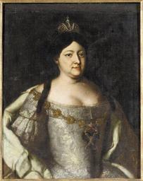 Keywords: Anna of Russia by anonimous (priv.coll).jpg German School 18th century PORTRAIT OF THE EMPRESS ANNA OF RUSSIA 1693-1740 DEUTSCHE SCHULE 18 JHDT PORTRAIT VON ZARINA ANNA VON RUSSLAND half length wearing a braided dress and the order or St Andrew Oil on canvas unlined 88 by 70 cm http //www sothebys com/en/auctions/ecatalogue/2005/property-from-the-royal-house-of-hanover-mm0986/lot 468 html century 18 RusPainter Portrait paintings of Anna of Russia with ermine clothing Files uploaded by Shakko from various sources Images from Sotheby's Private collections of Russian art PD-old |