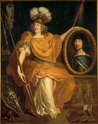 Keywords: Anne Marie Louise d'Orléans by Pierre Bourguignon holding a portrait of her father.jpg Artwork creator Pierre Bourguignon 1630-1698 Anne-Marie-Louise d'Orléans LangSwitch bekannt als La Grande Mademoiselle dargestellt als Minerva die Schutzgöttin der Künste und präsentiert das Medaillon Porträt ihres Vaters Gaston de France Herzog von Orléans 1608-1660 she was known as La Grande Mademoiselle On this picture the duchess is represented as Minerva protectress of Arts She holds a medallion portrait of her father Gaston of France duke of Orleans 1608-1660 conocida como La Grande Mademoiselle representada como Atenea protectora de las Artes y la presentación de la medalla retrato de su padre Gastón de Francia duque de Orleáns 1608-1660 dite La Grande Mademoiselle représentée en Minerve protectrice des Arts et présentant le portrait en médaillon de son père Gaston de France duc d'Orléans 1608-1660 zij werd La Grande Mademoiselle genoemd Op dit schilderij is zij afgebeeld als Minerva godin van de Kunsten Ze houdt een portret in medaillon vast waarop haar vader wordt afgebeeld Gaston van Frankrijk hertog van Orleans 1608-1660 c 1672 Oil on canvas cm 175 148 institution Versailles 000PE007047 object history exhibition history credit line accession number MV 3504 http //www photo rmn fr Website http //www photo rmn fr/LowRes2/TR1/4NZXAM/84-001222 jpg Picture PD-old-100 DEFAULTSORT 1672c; duchess of Montpensier Pierre Bourguignon 1630-1698 17th-century portrait paintings in the Musée national du Château de Versailles Anne Marie Louise d'Orléans Duchess of Montpensier 1670s oil on canvas paintings in France 1670s portrait paintings from France 17th-century oil portraits of sitting women at full length Feathered headdresses in art female Females with helmets in art Fleur-de-lis in portrait paintings Military helmets in portraits Oval paintings of males Portraits as Minerva Portraits with image of family member Portraits with paintings Sculptures in portrait paintings Feathered helmets in art Images from Réunion des musées nationaux |