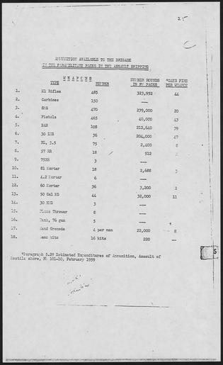 | Keywords: Annex No. 25 Ammunition Available to the Brigade - NARA - 193268.tif Scope and content Supplemental material used in Maxwell Taylor's report on the Bay of Pigs operation General notes 193268 Local identifier President 1961-1963 Kennedy Office of the Special Assistant to the President for National Security Affairs 01/20/1961 - 11/22/1963 NARA-Place Cuba North and Central America nation 4186389 21 5 -80 <br /> John F Kennedy Library NLJFK Columbia Point Boston MA 02125-3398 Record group Collection JFK-NSF Papers of President Kennedy National Security Files 01/20/1961 - 11/22/1963 Record group ARC 1164 Papers of President Kennedy National Security Files Countries compiled 01/20/1961 - 11/22/1963 Series ARC 193236 File unit Papers of President Kennedy National Security Files Countries Cuba Subjects Paramilitary Study Group Taylor Report 04/1961 - 07/1961 File unit ARC 193237 Variant control numbers NAIL Control Number NLK-NSF-CNTRYS-CUBASUBPSRTRANX-4DDDW yes Other versions NARA-cooperation PD-USGov Check categories-NARA 2011 September 13 Bay of Pigs Invasion Documents in English |