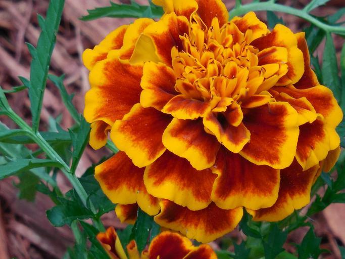 Keywords: annual marigold plant yellow garden flower blossom spring bloom colorful botanical botany gold vibrant flora green gardening season golden decoration nature summer