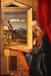 Keywords: Annunciata di Giovanni Bellini e aiuti (1).JPG and workshop title Angel of the Annunciation and Virgin Annunciate Ange de l'Annonciation Vierge de l'Annonciation Angelo annunciate Annunciata it Gallerie dell'Accademia - MIBAC 0270422853-MIBAC 2014 ca 1500 oil canvas size cm 225 105 each Institution Gallerie dell'Accademia Venice III http //www gallerieaccademia it/sale/sala-iii Accademia<br>http //www wga hu/html/b/bellini/giovanni/1490-99/157mira html Web Gallery of Art object history from Santa Maria dei Miracoli; Acquisizione 1907 l'angelo annunciante per acquisto; 1910 l'Annunciata per revoca del deposito di San Francesco della Vigna credit line These are the outer wings from the organ in Santa Maria dei Miracoli inside were Saint Peter and Saint Paul lost fr Ces deux toiles décoraient les portes externes de l'orgue de l'église Santa Maria dei Miracoli accession number Cat 734 own Mongolo1984 2014-09-10 it 45 431391 12 328406 PD-old-100-1923 cc-by-sa-3 0 DEFAULTSORT Bellini Giovanni; Annunciation; D M; Accademia Venice; 1500 Angel of the Annunciation and Virgin Annunciate by Giovanni Bellini in the Gallerie dell'Accademia Venice Red shoes in paintings Images from Wiki Loves Monuments 2014 in Italy Uploaded via Campaign wlm-it Images from Wiki Loves Monuments 2014 Images from Wiki Loves Monuments 2014 in Italy needing check