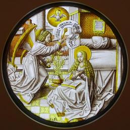 Keywords: Annunciation, Lower Rhine, c. 1520, stained glass - Museum Schnütgen - Cologne, Germany - DSC09844.jpg en Exhibit in the Museum Schnütgen - Cologne Germany 2015-11-29 07 51 22 own Daderot other versions PD-old-100 cc-zero Tondo windows of Museum Schnütgen The Annunciation on stained glass windows |