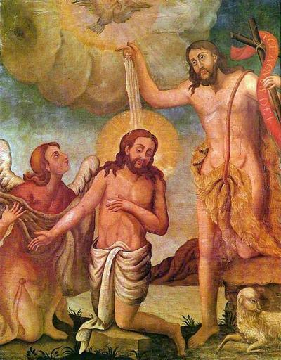 Keywords: Anônimo - Batismo de Jesus, séc. XVIII.JPG Batismo de Jesus Baptism of Christ Pokřtění Krista century 18 Oil on canvas cm 125 120 Museu de Arte Sacra de São Paulo São Paulo Já atribuída a Manuel da Costa Ataíde a obra parece derivar de um pintor de seu círculo MAS catalogue PD-old-100 Other versions Baroque paintings from Brazil 18th-century paintings from Brazil Paintings in the Museu de Arte Sacra de São Paulo Paintings of the baptism of Jesus Christ John the Baptist wearing fur |