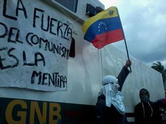 | Keywords: Anonymous protester 1 Venezuela 2014.jpg en A protester wearing an Anonymous mask and holding a Venezuelan flag The sign says The strength of comunism is the deceit es Un manifestante llevando una máscara de Anonymous y sosteniendo una bandera venezolana La fuerza del comunismo es la mentira 2014-03-16 13 44 00 own Jamez42 cc-zero Uploaded with UploadWizard Demonstrations and protests opposing Bolivarian Revolution Photographs of flags of Venezuela Demonstrations and protests in Venezuela in 2014 |