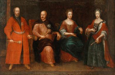 Keywords: Anonymous Sieniawski family.jpg Polish-Lithuanian Commonwealth 1724-1726 oil canvas cm 106 144 Institution Wilanów Palace Museum accession number Wil 1264 839 object history credit line The painting depicts from the left Stanisław Ernest Denhoff Adam Mikołaj Sieniawski Elżbieta Sieniawska and Maria Zofia Sieniawska Marek Rostworowski 1983 Polaków portret własny praca zbiorowa Volume 2 Arkady ISBN 83-21331-55-6 p 158 http //www mnp art pl/2004/sarmatyzm/Kol_051_1 jpg www mnp art pl PD-old-100 DEFAULTSORT 1724-1726 Sieniawski family Baroque painters from Poland 18th-century portraits in the Wilanów Palace Ermine clothing in art Fur linings in art Sieniawski family Maria Zofia Czartoryska Elżbieta Sieniawska Polish nobles costumes Fur fashion in 1725 |