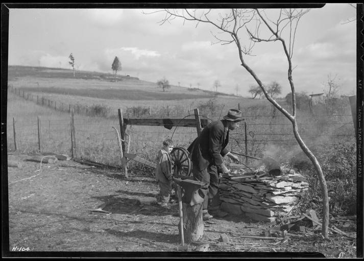 | Keywords: nara:arcid=532722 u.s. national archives usnationalarchives lewis hine lewishine blackandwhite photo border monochrome outdoor black and white Original Caption: Another view of S. J. Barley, Rural Route #2, LaFollette, Tennessee, at his outdoor forge. Barley says: `I've just got to have a job. First I'm a blacksmith, next I'm a carpenter, or I'll do anything.', November 1933 U.S. National Archives’ Local Identifier: 142-H-104 Photographer: Hine, Lewis Subjects: New Deal, 1933-1939 Rural areas Tennessee (United States, North and Central America) state Water projects Persistent URL: research.archives.gov/description/532722 Repository: Still Picture Records Section, Special Media Archives Services Division (NWCS-S), National Archives at College Park, 8601 Adelphi Road, College Park, MD, 20740-6001. For information about ordering reproductions of photographs held by the Still Picture Unit, visit: www.archives.gov/research/order/still-pictures.html Reproductions may be ordered via an independent vendor. NARA maintains a list of vendors at www.archives.gov/research/order/vendors-photos-maps-dc.html Access Restrictions: Unrestricted Use Restrictions: Unrestricted Original Caption: Another view of S. J. Barley, Rural Route #2, LaFollette, Tennessee, at his outdoor forge. Barley says: `I've just got to have a job. First I'm a blacksmith, next I'm a carpenter, or I'll do anything.', November 1933 U.S. National Archives’ Local Identifier: 142-H-104 Photographer: Hine, Lewis Subjects: New Deal, 1933-1939 Rural areas Tennessee (United States, North and Central America) state Water projects Persistent URL: research.archives.gov/description/532722 Repository: Still Picture Records Section, Special Media Archives Services Division (NWCS-S), National Archives at College Park, 8601 Adelphi Road, College Park, MD, 20740-6001. For information about ordering reproductions of photographs held by the Still Picture Unit, visit: www.archives.gov/research/order/still-pictures.html Reproductions may be ordered via an independent vendor. NARA maintains a list of vendors at www.archives.gov/research/order/vendors-photos-maps-dc.html Access Restrictions: Unrestricted Use Restrictions: Unrestricted |