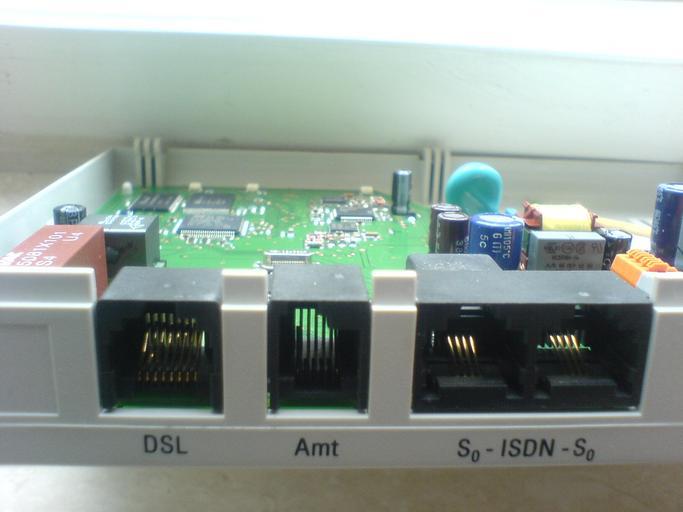 Keywords: Anschlüsse für DSL, Amt und ISDN.JPG Anschlüsse für DSL Amt und S<sub>0</sub> ”ISDN ”S<sub>0</sub> an einem Sphairon-DSL-Splitter NT 1 Plus-Arcor Bj ca 2006 own 2008 User Mattes DSL splitters Work by Mattes 2008 Modular connectors Arcor User Mattes/Contributions/Topics/Technology Sphairon Taken with Sony Ericsson W810 |