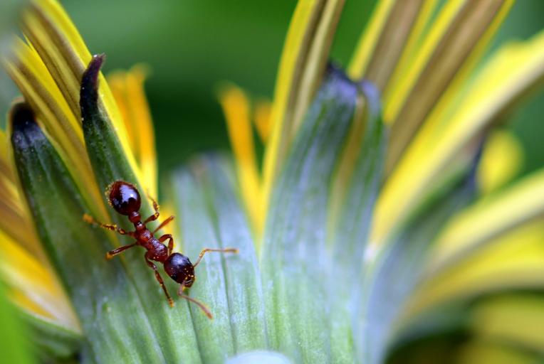 Keywords: ant red garden ant red yellow node ant myrmica rubra insect nature crawl dandelion