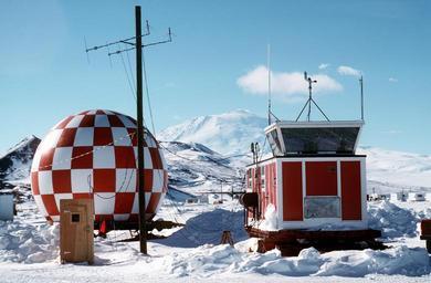 Keywords: antarctica winter snow ice sky clouds mountains mcmurdo station radar site buildings nature outside