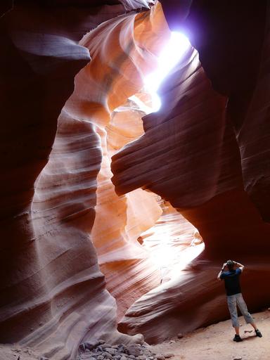 Keywords: antelope canyon page sand stone gorge canyon colorful color light shadow usa arizona lower antelope canyon slot canyon human person photographer