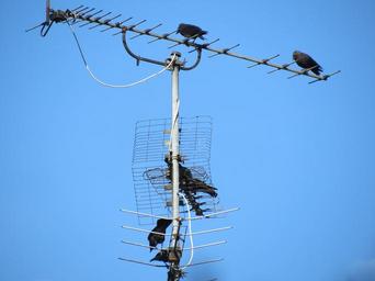 Keywords: antenna tv antenna reception old blue sky birds dig black bird corvidae