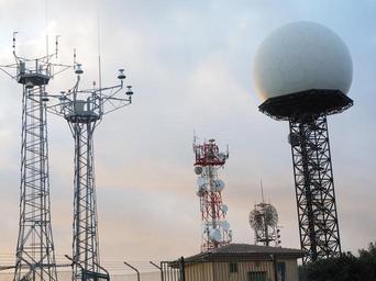Keywords: antennas radar equipment balloon-like white ball transmitter transmission communication navigation radar signal air traffic spherical puig de randa mallorca randa