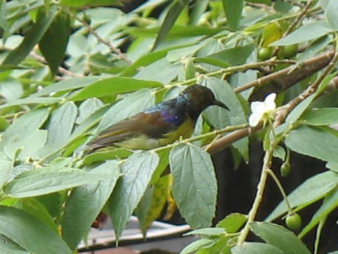 | Keywords: Anthreptes malacensis male 02.jpg A male Brown-throated Sunbird Anthreptes malacensis in east indian plum tree Flacourtia jangomas Lour Ransch Location Chumphon province south of Thailand Own 2007-08-15 Phirada Chaturanwanit Anthreptes malacensis Muntingia calabura |