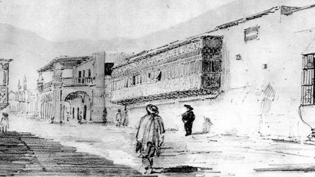 Keywords: Antíguo jirón Pizarro.jpg es Aparece en primer plano la Casa de la Marqueza de Herrera viuda de Bracamonte ; en la esquina el antíguo Palacio Municipal painting 1839 photo 2012-05-20 Dibujo del antiguo jirón Pizarro en el centro histórico de Trujillo Perú publicado en Perú en 1839 Creator Léonce Angrand 1886 Paintings Trujillo Peru Léonce Angrand |